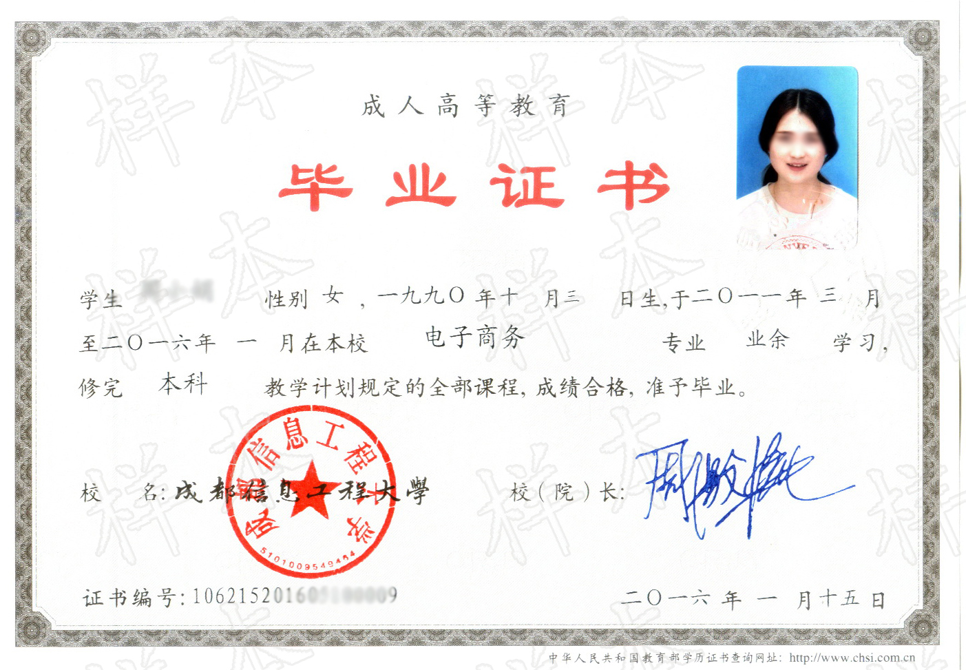 ③ 毕业文凭的区别:成人高等教育经考试合格,颁发成都信息工程大学成人高等教育文凭,应用型高等自学考试经考试合格,颁发四川省自考委和成都信息工程大学共同签署的高等教育自学考试毕业证书,两种文凭国家均承认学历。