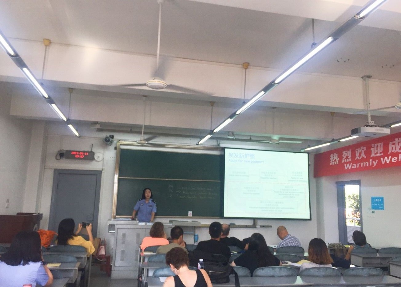 Officer Zhao, from Exit&Entry Administration Center of Shuangliu District, Chengdu, explained in detail about the student visa and personal & property security, and answered the questions raised by international students.