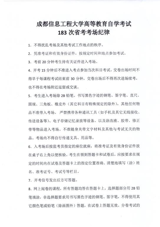 成都信息工程大学高等教育自学考试183次省考考场纪律